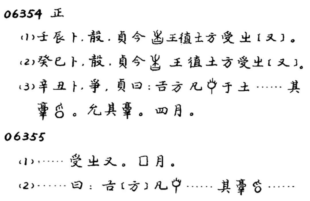 备注:甲骨文「合集6354正」:“辛丑卜,争,贞曰:‘