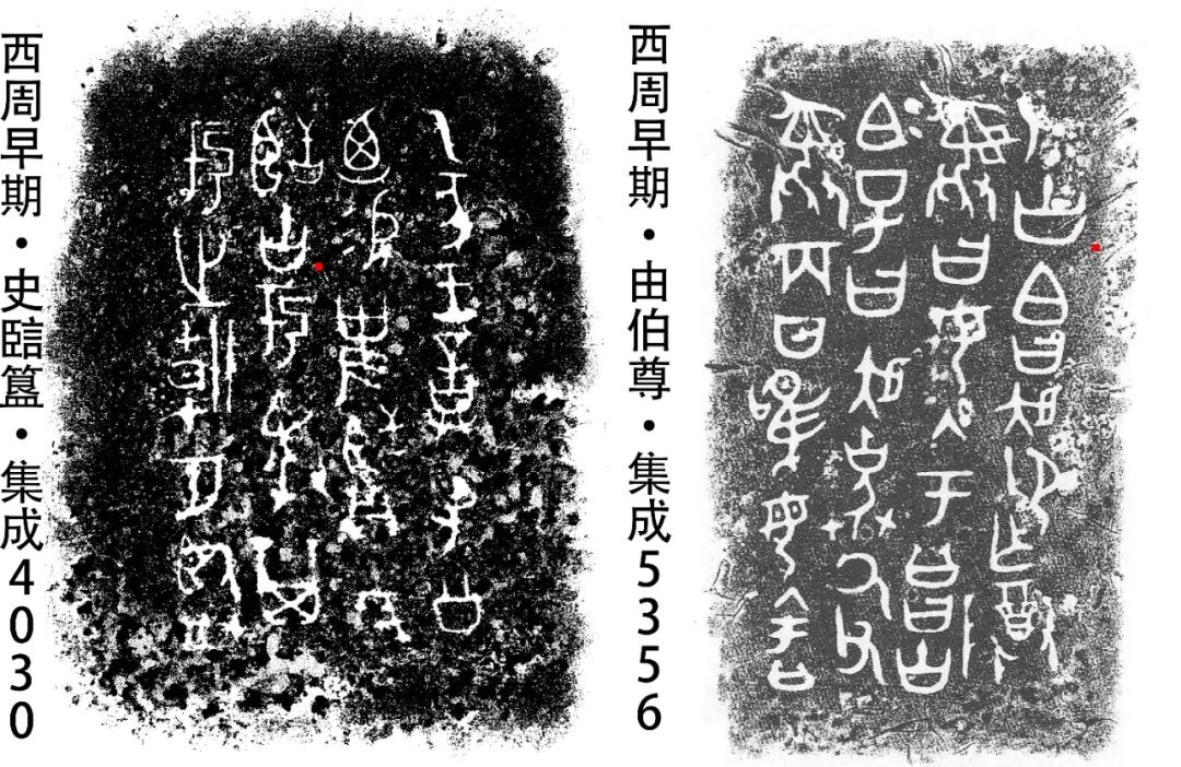 西周金文多用作人名,如「由乍旅鼎」(集成1978):“由乍(作)旅貞(鼎)。”、「□伯卣」(集成5356):“由伯曰:七月。”等。