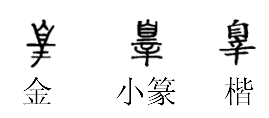 “睾”读作zuì,会意字。金文上为“自(鼻子)下为“辛(平口刑刀)”。以刀割鼻子,是对罪犯的一种酷刑。“睾”为“罪”的本字,经传中二字通用,只因“睾”字与“皇”字相似,所以秦始皇就以“罪”代“睾”,将“睾”字废除了。