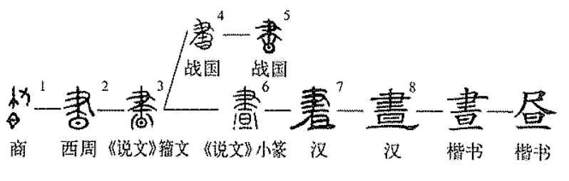 金文的“昼”字承接甲骨文,写作“晝”,仍然表示一只手拿着木杆在测量日影。小篆的“昼”字承接金文,构形基木相同,只是在“日”的四边又添加了一个“框”,表示“昼”为日出至日落这一特定时间单位的限定,也可能是日晷的简省图形。因此,“昼”的本义为一日之间。也可理解为立木为表,测量日影以定时辰。楷书写作“晝”因字体笔划繁多,简化后写作“昼”。