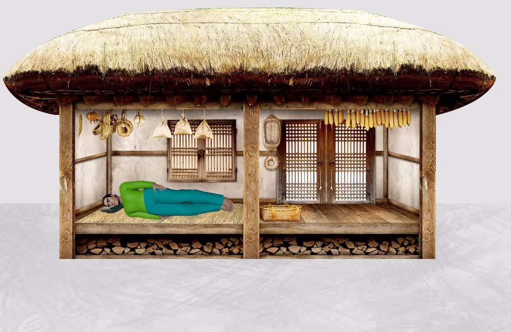 “寒”,是一个非常有绘画效果的会意字。金文的“寒”由宀、茻(mǎng)、人、仌(bīng)四个符号组合而成。其中的“宀”指房屋,以四草会聚的“茻”表示取暖躺卧用的干草,“仌”则是古文的冰字,“人”则躺卧在草丛之中。整个字形用外边冰天雪地,人在屋内草垫上取暖,表示寒冷的意思。小篆的字形则体现了笔形匀整的特点,造字构件一个不缺。楷书隶变后写作“寒”,仍是一个部件不少。