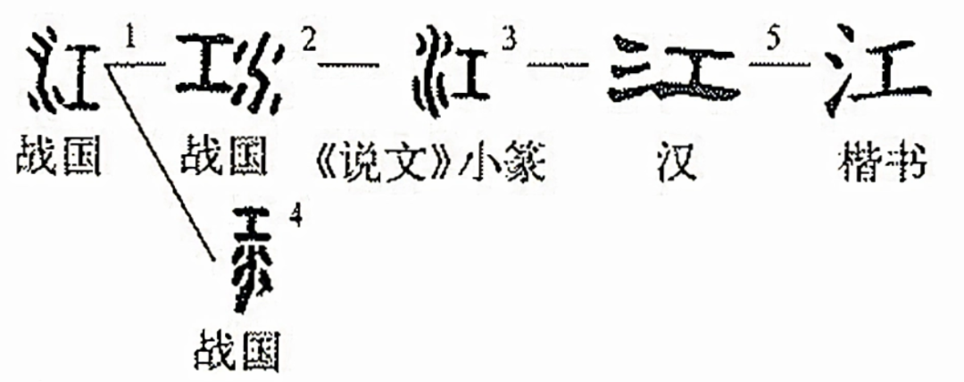 “江”,形声兼会意字。水是形符,表示与水有关;工是声符,除了表示读音之外也有区分意义的功能,“工”是“巨”的本字,有巨大的意思。小篆略同金文。隶书、楷书笔画化,形体稍变。“江”的本意是中华最大河,发源于中国西北(青海唐古拉山),由西至东流经中国中南部广大地区,流入东海的河流。在古汉语中,“江左”指长江下游南岸地区,也指东晋、宋、齐、梁、陈各代的全部地区;“江右”指长江下游北岸,淮水中下游以南的地区;“江东”指长江下游南岸地区,亦也指三国时吴国的全部地区;“江表”指长江中下游以南地区。后来“江”字的意义慢慢被扩展,引申为大河的通称,如江山、江河、江边。