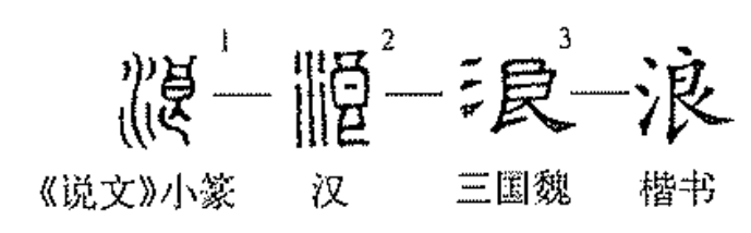 “浪”,会意兼形声字。小篆的“浪”字“从水从良”。“良”在甲骨文中取像于光线透过窗洞,或房顶上的窟隆照射而下,因而有亮光穿通之义。这里以水流跳荡时的白色水沫来表示涌起的浪花。《正字通》因而释为:“水激石遇风则浪。”如晋代诗人左思《魏都赋》:“温泉毖涌而自浪,华淸荡邪而难老。”杜甫《望兜率寺》诗中的:“霏霏云气重,闪闪浪花翻。”以及毛泽东《沁园春·长沙》一诗中:“到中流击水,浪遏飞舟”诸多诗句中的描述。