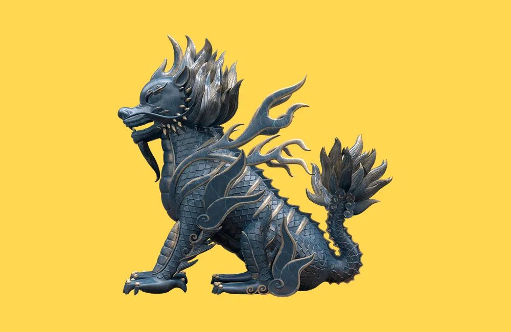 獬豸又称獬廌、解豸(xiè zhì),是中国古代神话传说中的神兽,体形大者如牛,小者如羊,类似麒麟,全身长着浓密黝黑的毛,双目明亮有神,额上通常长一角。