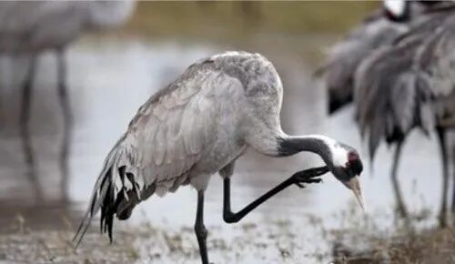 灰鹤全身都是灰色的羽毛,只有在头顶才会露出鲜红色的皮肤,这种鸟的脖子和脚都非常长,但是一点也不影响它们的飞行,它们的飞行高度可以达到10000米左右,主要生活在湖泊、平原、草地等比较开阔的地方,以植物茎叶等为食。