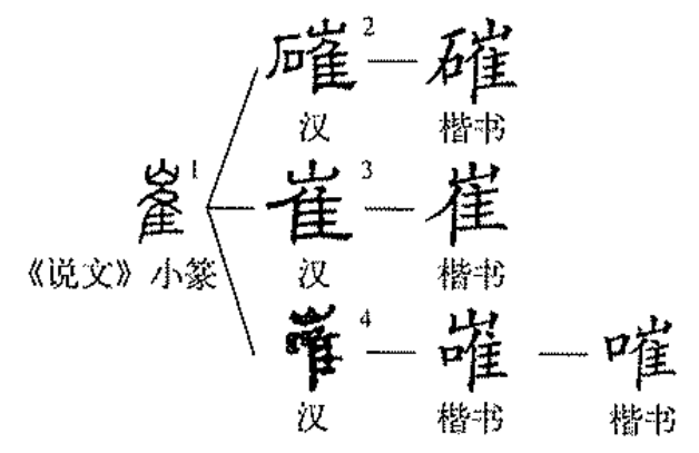 高峻山峰的中部,常有云雾缭绕。身临其境时,云雾的移动反衬出好似山峰在移动一样。山峰之高,鸟飞不过去,只好绕道而行,因此,“崔”又可表示移动,《集韵》释为:“崔,动貌。”如《庄子·大宗师》:“崔乎其不得已乎。”并且,由此义孳乳出包含“移动”义的“摧、催、璀”等汉字。
