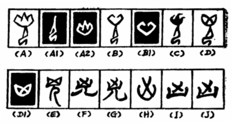 “凶”字发展到秦篆阶段,还出现了另一个形体,“人牲”头上的火焰已脱离了人头,独立演变成图(H)的小篆的“凶”。如今,已不用繁体的“兇”,只用“凶”作为“兇”的简体字了。