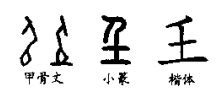 “𡈼”,《说文解字》释为:“𡈼,象物出地挺生也。”徐铉则对此纠正说:“人在土上,𡈼然而立也。”古文典籍中,“𡈼”字久已不单独使用,但“𡈼”的本义,即挺立的意思,作为宇符仍保留在“望、廷、挺、呈、程”等汉字之中。