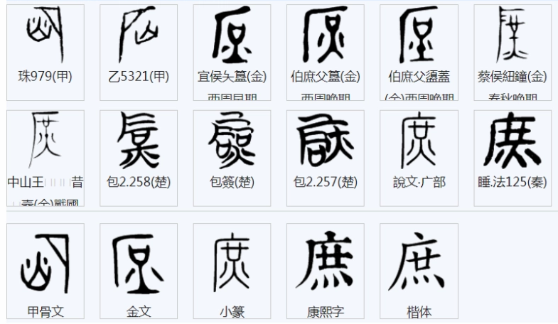 “庶”shù,会意字。甲骨文的“庶”字,上部为“石”的象形,下部是“火”的象形。两形会意,表示能够燃烧的石头,即煤炭。金文的“庶”字,上部增添一个翻转符号“厂”,表“石”(即煤炭)在下,火在上的燃烧方式。小篆的“庶”字承接金文,只是改“厂”为“广”,已含有广大、繁多之义了。