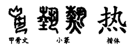 “热”,会意字,“熱”的简体字。甲胃文的”热字,像人手执燃烧的火把。小篆第一款:左边由“光”和“土”组成,表示燃火撒走后,地表因烘烤而发烫。第二款的“热”字,下边又加注了一个“火”,演变成一个会意兼形声字。楷书缘此写作“熱,汉字简化时规范为“热”。