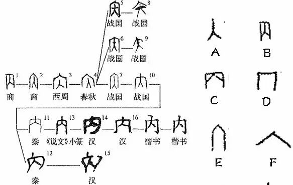 “内”的本义为“自外入内”,《说文解字》释为:“内,入也。”“内”作名词时,表示一定范围的里面、内部之义,与“外”词义相对。如汉语中的“内衣、内地、国内”,以及《论语·颜渊》中的:“四海之内皆兄弟也。”