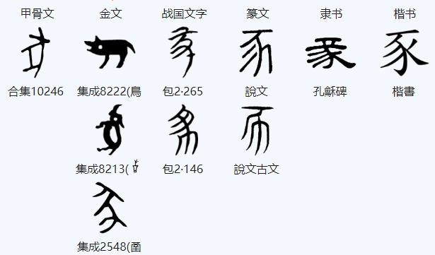 又叶施智切,施去声。司马相如《上林赋》格虾蛤,鋋猛氏。羂騕褭,射封豕。《韵会小补》相如赋本文一段俱上声,吴棫《韵补》以豕字叶入寘韵,误。《字汇》凡偏傍从豕者,俗省作豕。