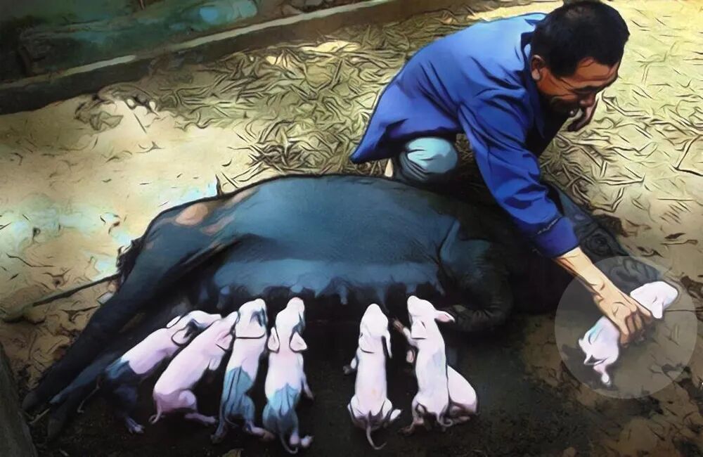 “豚”的本义,指专为肉食宰杀而畜养的小猪。古人喜食炮羔炮豚,就是今日所说的“烤小猪”。“豚”字从肉,正是强调其肉质鲜嫩,适宜炮炙。“豚”字从肉,也表明喂养的目的。金文和小篆中的那只手(又),则强调了从母猪身边抱取的意思。