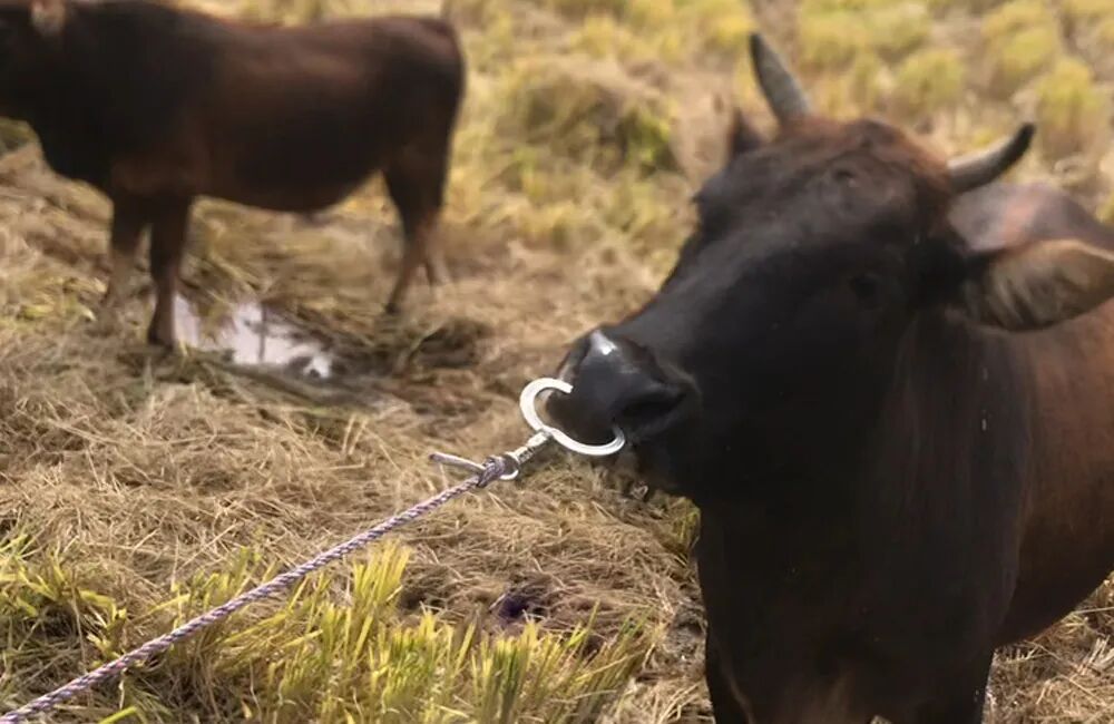 穿鼻环后要让牛只休息1~2天,而后经常牵拉鼻绳把牛牵到有青草的地方放牛,让牛知道穿鼻环的好处(有草吃),并逐渐让牛干些小农活,训练温顺。过去的鼻环为铁做的,后来有铜制的,现在很多地方改用不锈钢。