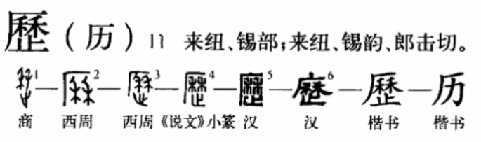 应该注意的是,简化后的“历”字身兼二任,也是表示太阳移动,时间流逝的“曆”字的简体。