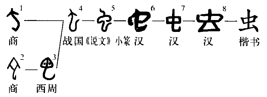 虫,原本在上古先民的观念中就没有分清,既指昆虫,也指虫类中的蛇。可能正是这种“模糊”,导致“虫”字的意义扩大到泛指除禽鸟以外的小动物,中古以后,又扩大为整个动物的类属概念。由此可见中国人思维上的“形而上”的由来。
