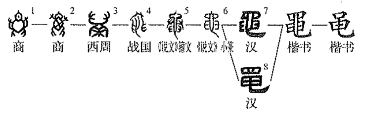 金文和小篆的“黾”字承接甲文,但演变过程中,象形的韵味逐渐丧失,符号化逐渐增强,楷书繁体写作“黽”。因为此字书写时笔画不顺,电汉字简化方案中将其简省为“上口下电”的“黾”。