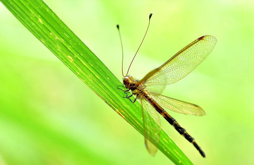 脉翅目通称蛉。口器咀嚼式。触角长,呈丝状,多节。复眼发达。翅膜质透明,有许多纵脉和横脉,多分支,前后翅脉序相似,网状,翅脉在翅缘分叉。无尾须。全变态。卵多为长卵形或有小突起,草蛉科昆虫有的卵有丝质长柄。幼虫蛃型,头部具长镰刀状上颚,口器为捕吸式;胸足发达,但无腹足。化蛹前由肛门抽丝结茧,多从前蛹期在茧内越冬,少数成虫在隐蔽处过冬。蛹为强颚离蛹。部分种类幼虫水生。成虫及幼虫均捕食性。世界已知约4500多种,可分为3亚目6总科20科,我国记载14科640余种。在分类上与广翅目、蛇蛉目相近。