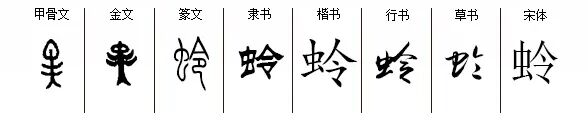 “蛉”lǐng,原本是一个象形字。甲骨文中的“蛉”乃蜻蜓的白描勾勒,整个图形,恰似有着四个翅翼和歧尾的蜻蜓之形。金文的“蛉”字更为象形,构形上也更为美观。小篆的“蛉”字舍弃象形,另起炉灶,创造了一个“从虫、令声”的形声字。其中的“令”字,大概与蜻蜓不断用尾巴向水面弯曲,就像人们听从命令而不断躬身点头一样,也可能与蜻蜓交配时一个驮着一个飞行有关。楷书承接小篆,因此写作“蛉”。