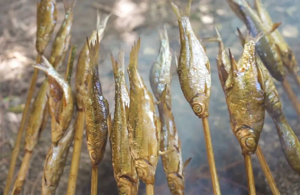 以木棍穿鱼放在火上烧烤,是一种最简便的猎食方法。烧烤后的鱼酥脆而可口,因此“稣”有松脆的意思,此义后来经置换偏旁假借为“酥”。禾草春生秋死,但来年又会像鱼儿游回一样重生、因此“稣”字缀加“艹”字头后表示“蘇醒”(简化为苏)之意。表示野草烧枯后的再次萌生,与“野火烧不尽,春风吹又生”意同。《玉篇·禾部》释为:“死而更生也”。