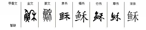 “稣”sū,会意字,“穌”的简体字。金文的“稣”字从鱼从禾,源自古人以木棍穿鱼放在火上烧烤。楷书缘此而写作“稣”。