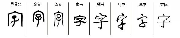 “字”,会意字。“字”即在室内生孩子(包括怀孕、哺乳)。朱骏声《说文通训定声》:“人生子曰字。”《广雅·释诂》:“字,生也。”“字”本是生孩子的意思。《诗经·大雅·生民》叙述周代的始祖——农业之父后稷的母亲姜嫄祷神求子,踏天神脚印怀孕生下后稷,不敢养育而把他丢弃的经历。其中说道:“诞置之隘巷,牛羊腓字之。”把婴儿丢在没人管的地方,而“牛羊腓字之”,就是说牛羊都来遮蔽保护他,给他喂奶。《周易·屯卦》:“女子贞不字,十年乃字。”唐代李鼎祚《周易集解》引三国虞翻的话说:“字,妊娠也。”是说女子十年才怀孕生孩子。“十年不字”则是说女子嫁了十年还没怀孕生孩子。再后来,女子出嫁也称字,“待字闺中”就是闺中待嫁。《正字通·子部》:“女子许嫁曰字。”“字”的意义引申序列可表示为:生子→出嫁、怀孕、哺乳→养育→治理、教育→文字(《说文·叙》:“仓颉之初作书,盖依类象形,故谓之文;其后形声相益,即谓之字。文者,物象之本;字者,言孳乳而浸多也。”)