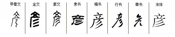 “彦”yàn,会意字。“彦”=(文,刻划图案)+(厂,崖岩)+(彡,刻纹), 造字本义:岩画,古人将表现行猎或战争的图案或符号,刻画在不易遭破坏的崖岩上并着上醒目的颜色,以便作为历史永久留传。篆文调整结构, 并将“彣”(wén)分写成“文”与“彡”(shān)。当“彦”的“崖岩图文”本义消失后,篆文再加“言”另造“谚”代替。