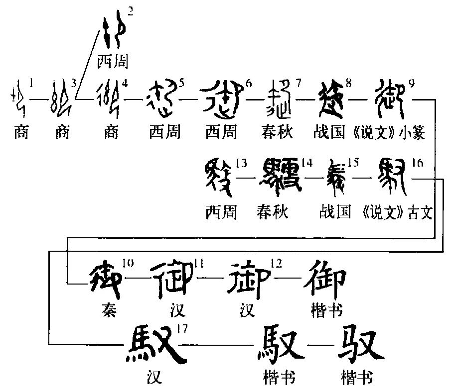 “御”从西周开始分化为“驭”和“御”,后因祭祀造“禦”,而古人祈祷‘御’一切的‘御’字,引申至驾驭万物。