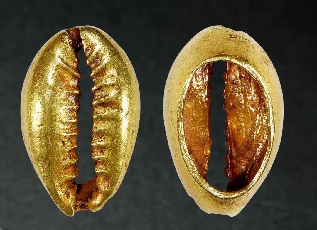 贝币中不单单包括天然贝,还包括人工制成的石贝、骨贝、金属贝等,从数量上看绝不会是只作为装饰。仿制贝意味着此时贝已经成为人们所公认的一般等价物,这不仅是早期城市的标志,更是人类逐步走向文明的标志。著名的商代“妇好墓”中随葬的海贝多达6880枚,同时还有6枚用绿松石仿制的贝币。使用如此多的海贝随葬也只能是墓主人财富的象征。