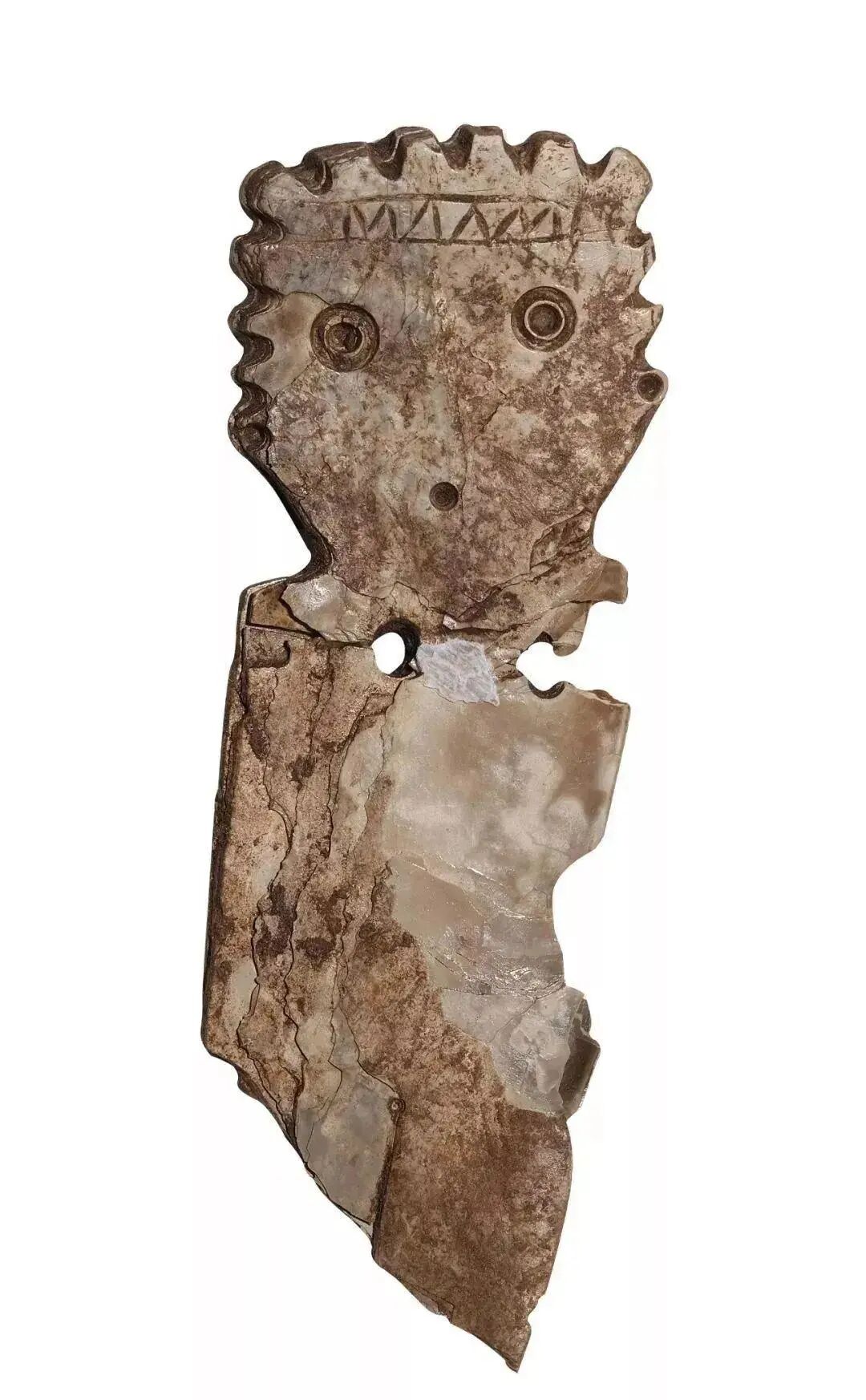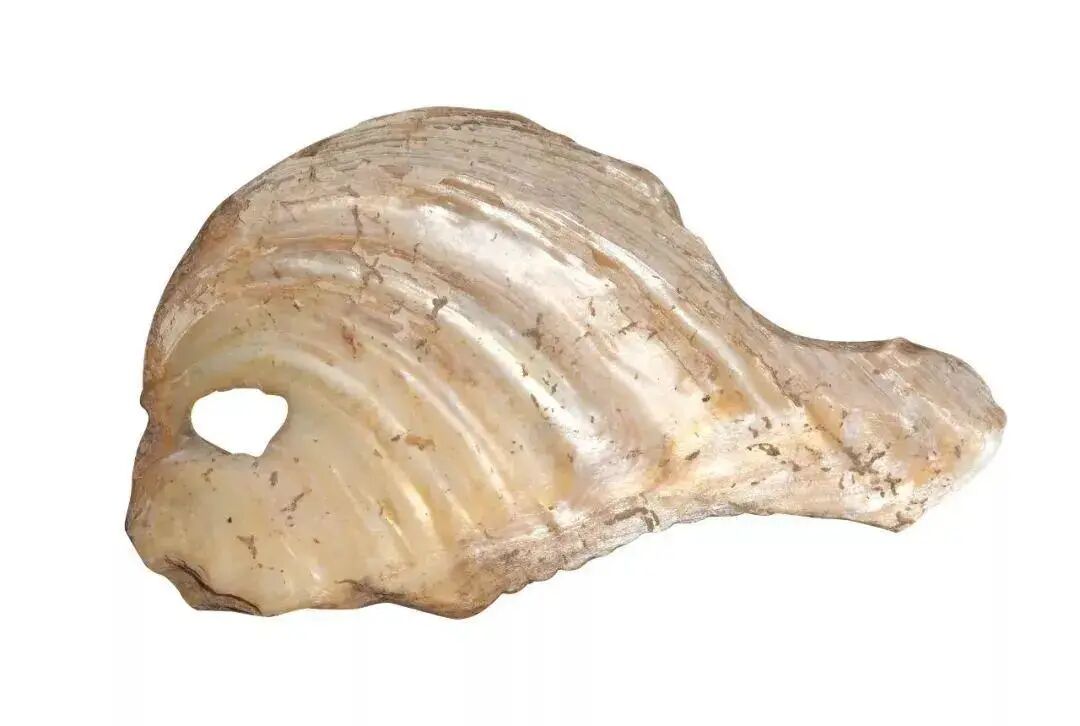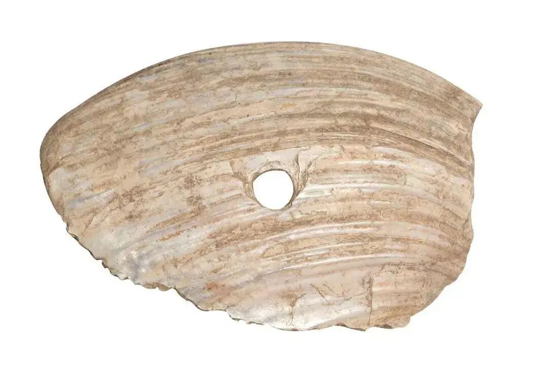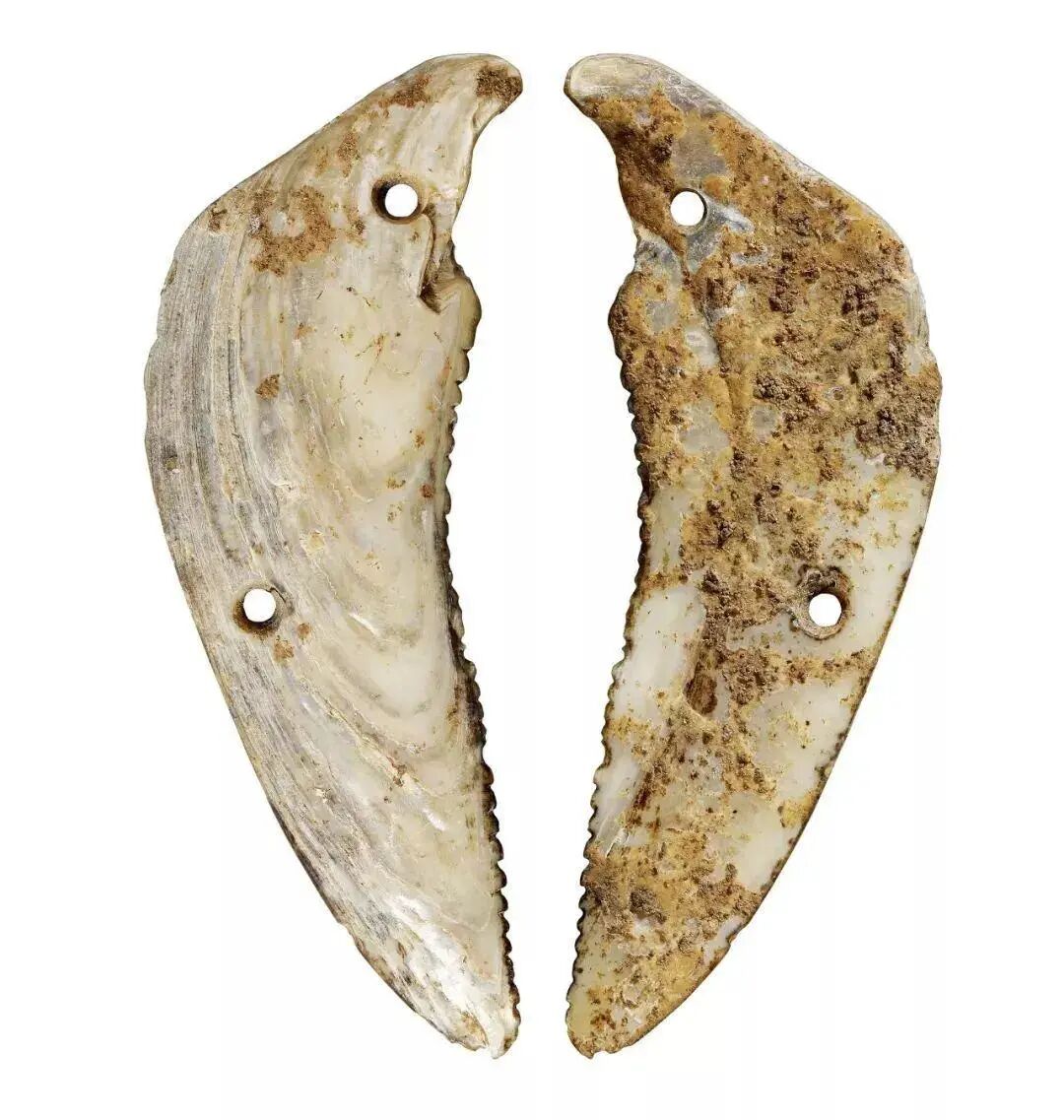 此为山东龙山文化的蚌贝币,不仅为货币,亦可代表人类历史上最早的锯的模型,据传现在所使用的锯子是春秋鲁国人鲁班发明,其实早在新石器时代时,代表龙山文化的先民们已经在用蚌贝制作出锯的工艺和使用功能,那时锯是直接握在手上使用。