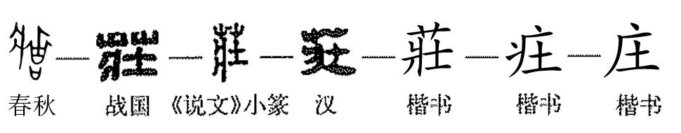 《说文》作壮。《干禄字书》通作荘。俗作庄,非。