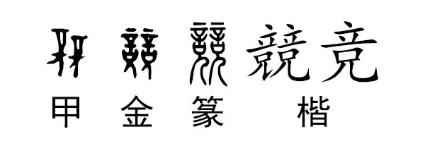 “竞”,本为争着说话,含有争相诉说强辨的意思,陕西关中方官至今仍有“竞碰”一词来表示这一词义。“竞”字引申后,又指争吵。如《诗·商颂·长发》:“不竞不俅,不则不柔。”其中的“竞表示争吵,”俅“则表示抢夺。再如《汉书·游侠传》:”外戚魏其武安之属竟函于京师。“这是说,魏其侯窦婴的属下与武安侯田蚡的属下相互争吵于京城长安。由此引申,“竞”又有争胜,比赛之义,如现代汉话中的“竞争、竞赛、竞走”等等。