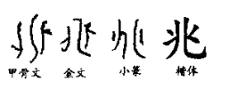 “兆”字也是一个偏旁字,例如”桃、咣、桃挑、恍、窕、眺“,以及“姚、晁”等字,均以“兆”为声义偏旁。