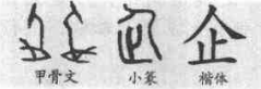 “企”,这是一个会意字。甲骨文的“企”字由止“人、止”两字组合而成:上部为侧面站立之“人”,下部是一个表示脚趾的“止”字。这里,两形会意,表示一个人踮起脚尖,四处张望。小篆的“企”字,人足分离,成为半包容形结构,楷书缘此写作“企”。