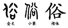 “俗”,这是一个会意字。金文的“俗”字“从人从谷”:左边乃侧立之人;右边是一个“谷”。“谷”字源自古人吃下带壳的谷物,通常会排泄出原样的谷粒,因此含有原始不化之义。小篆和楷书脉相承,用“人谷”会意,表示大众、普通、原本之义。如《汉书·刑法志》:“孙卿之言既然,又因俗说而论之。”“俗说”即大众的普通说法。由社会下层民众未经教化又引申出凡俗、庸俗之义。如王安石《兼并》诗中的:“俗儒不知变。”