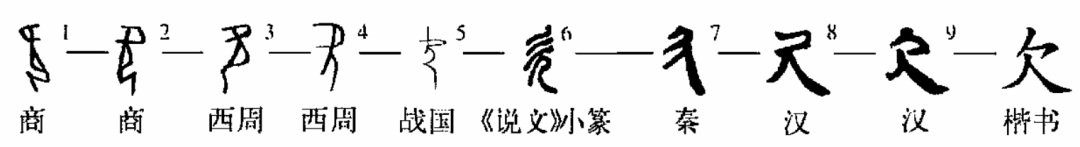 “欠”字取象于人的张口,因而“次、吹、炊、饮、欢、歌”等字都以“欠”为造字构件。