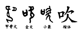 “吹”,这是一个会意字。甲骨文的“吹”字,左边是一个跪跽之人张开大嘴的形状(欠);右边则是表示一团空气的“口”。两形会意,表示向外吹气之状。金文承接甲文,只是左右对调了下。小篆依据“欠”字的演变,楷书缘此写作“吹”。