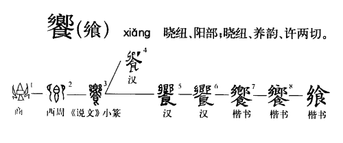 又叶荒降切,与向通。黄香《九宫赋》:狼弧彀弓而外飨。注:飨,宜读作向。