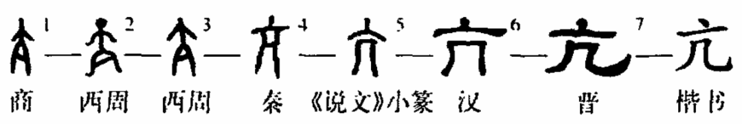“亢”,甲骨文的“亢”字,乃是在人(大)的两腿之间,加上一条连线,表示双腿被系上脚镣的意思。金文的“亢”字,更为象形,似乎就是一幅图画。小篆的“亢”字则发生了讹变,人形被割裂开来,成为“从人从几”的会意字。楷书由此而来,写作“亢。