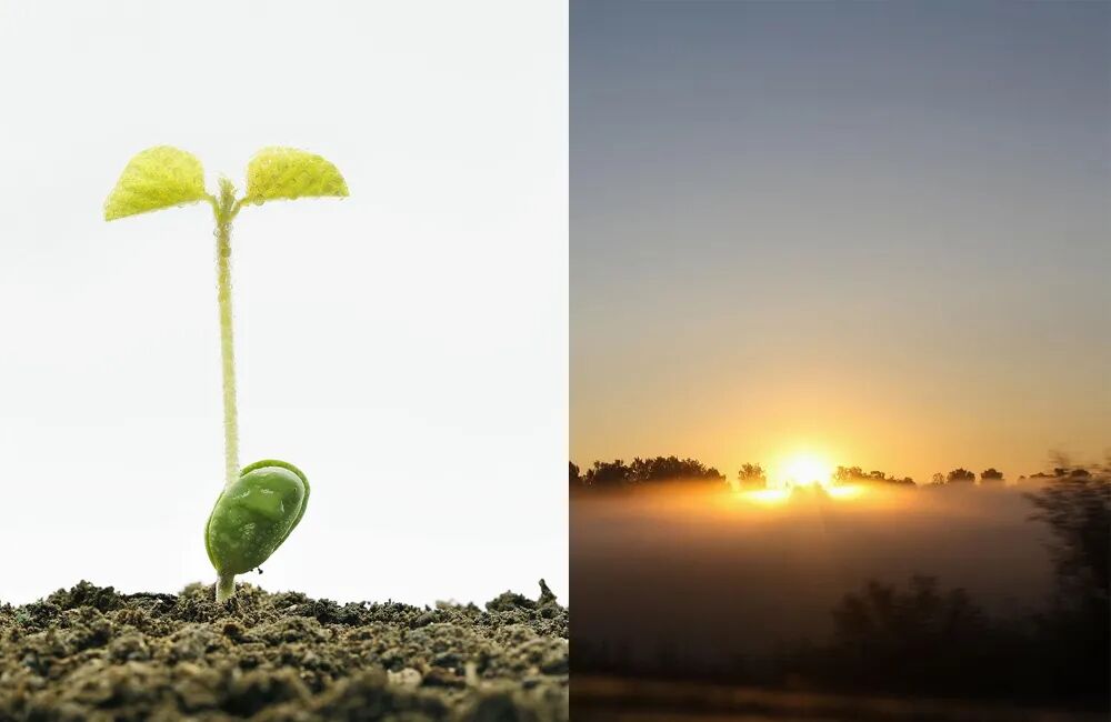 显然,“早”字的初义为种子发芽(口即表示种子的出芽口),此字在春秋初期发生分化,字形重组,产生一个新字‘从日从甲’,义为天将破晓,太阳冲破黑暗而裂开涌出,即日出,会意字。后造“草”为“早”的孽乳字。