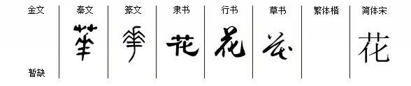 《唐韵古音》:按花字,自南北朝以上不见于书,晋以下书中闲用花字,或是后人攺易。