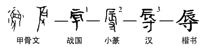 “辱”rǔ,会意字。甲骨文=“辰”(农具)+“手”(手持)的形象。本义:耕作。“辱”的金文暂缺,但籀文和秦简的下部或“寸”或“手”,已与今文无太大区别。“辰”是“蜃”的本字,古代以蜃为农具进行耕作。这个意义后来写作“耨”( nòu)。误了农时,耽搁了耕作大事,有杀头之罪,所以“辱”字又有“羞耻”之义。又指使人受到羞辱,用作动词。