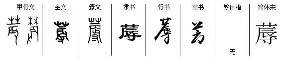 “蓐”rù,会意兼形声字。“莀”是“蓐”的本字。辰,既是声旁也是形旁,是“䢅”、“振”和“辱”的本字;而“辱”又是“耨”的本字,表示用蚌器(农具)。造字本义:手持蚌器“辰”除草。隶化后楷书将篆文字形中的“艸”写成“艹”,最终形成我们今天看到的“蓐”。(图为青铜耨)