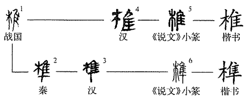 “椎”(chuí zhuī),形声字。从木,隹声;或从木,隼声。本义指一种敲击的器具。作为打击的木制工具时,椎、棰(chuí)、槌(chuí)是互通的。