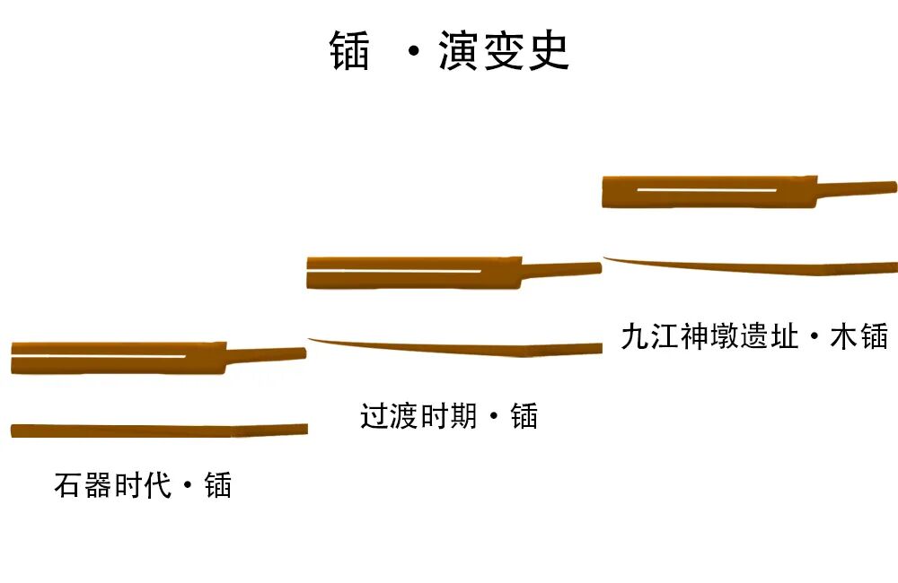 在江西九江神墩商代遗址的一眼水井里,发现了一件完整的木锸实物。(如图)九江神墩木锸是用整块方木刳(kū)制而成,锸头平面为长方形,如果将其看作单齿锸,可以认为锸头平面中间有一长方形孔隙;如果将其看作双齿锸,则锸的双齿中间有一长条形缝隙,缝隙到前端终止,双齿又连成一体。这样的结构,既增强了齿的强度,使之单齿不易折断,又减小了锸头入土的阻力,还减轻了锸头的重量,锸板缝隙便于铲河中沙土过滤其中的水分。锸的柄部断面为正方形,四角修成小圆弧。铺头长65厘米,宽14厘米,前端薄、后端厚,厚度在2.4-2.9厘米之间,刃部微上翘,柄头通长88厘米。就其结构看,显然这种锸已是一种比较成熟的农具,要比用树杈做成的双齿耒大大地前进了。