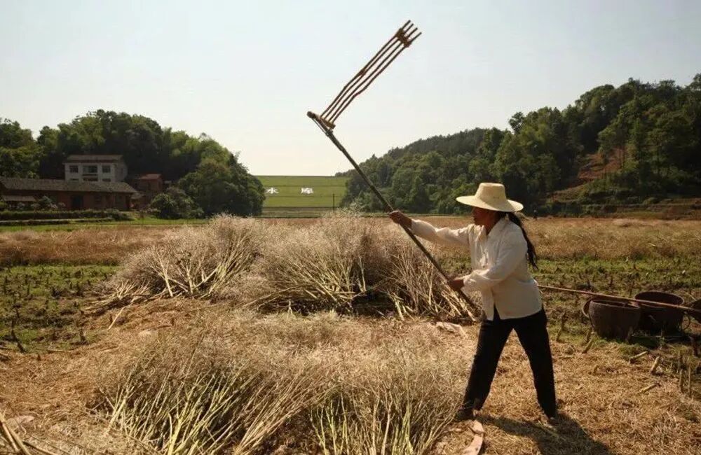 “耞”jiā,形声字。一种叫连枷的打谷农具。在原始农业时代已有应用,贯穿于整个历史时期,至今仍可见到应用者。“5·12”汶川大地震,致现代脱粒机因缺电等原因无法应用,连枷又重出“江湖”,解了灾区燃眉之急。对于连枷的结构,以前未见详细记载,《王祯农书》(元代)说得比较详细:“用木条四茎,以生革编之,长可三尺,阔可四寸。又有以独挺为之者,皆于长木柄头,造为擐(huàn)轴,举而转之,以扑禾也。”