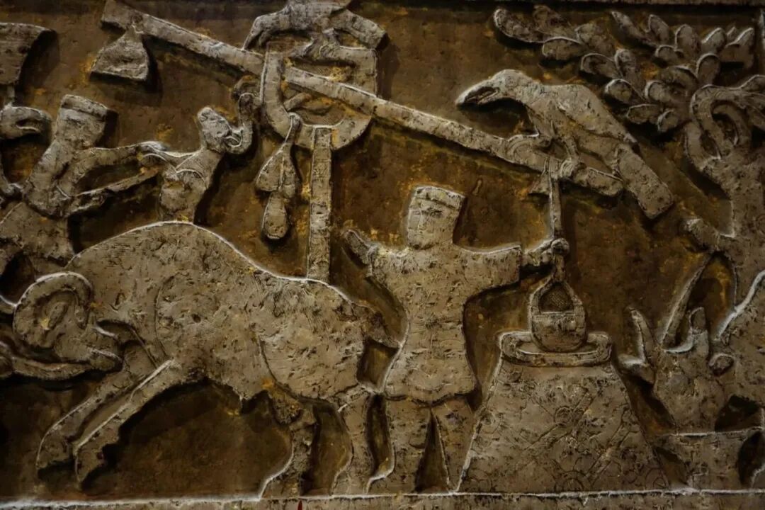 从这些文字中可知,桔槔这种器械是用木材加工制作的,后头重,前头轻;拉它它就俯下来,放开手它就抬上去。而且形容了抽水的情景,应该说,描述还是很生动的。但是如果没有实物作参照,单靠这些文字还是不容易搞清楚桔槔的具体结构。由于桔槔为木制,所以至今没有发现过春秋战国时代的实物。幸好汉代的画像石中保存了桔槔的图像,使我们得以见到古代桔槔的真面目。从而也得出了这样一个结论:桔槔从发明之日起直到现代,结构、原理和操作、使用均没有发生任何原则性改变。(说句题外话,找这张汉画像着实不易啊,文化的历史资料能不能制成书,或者放在哪个平台供大家下载,都放到博物馆里的意义是什么?)