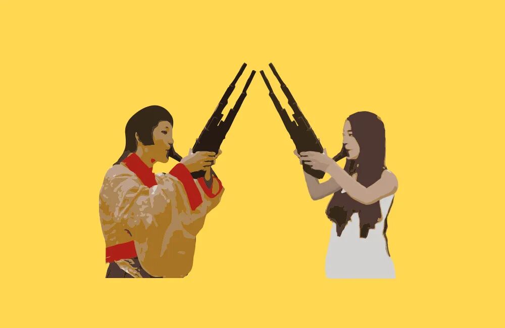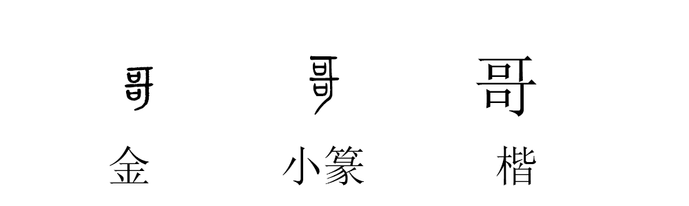 “哥”,篆文=(唱歌求偶)+(唱歌求偶),造字本义:男女对唱情歌。“哥”的“对唱情歌”本义消失后,篆文又加“欠”(吹)另造“歌”代替。