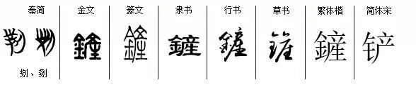 “铲”chǎn,“鏟”的简体字,同“刬”(剗,皆读chǎn)。先秦时代的“铲”写作“ 鏟”或“刬”(剗)或“剷”(chǎn),发明金属后渐渐创造了“铲”字,并且逐渐取代了“刬”和“剷”。“铲”与“刬、剷”所表示的农具从古到今一直是一种。造字本义:除草、松土的农具,可削去、铲平。