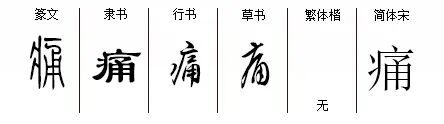 “痛”tòng,形声字。甲骨文=(疒nè,与病有关+甬,贯通、破口)两形会意,身体有破口。造字本义:身体有破口。